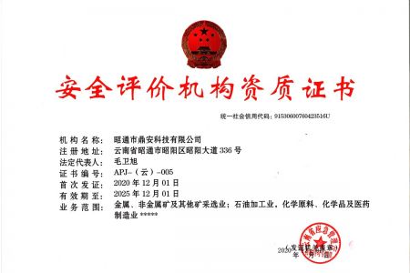 2003年11月10日,昭通市鼎安科技有限公司成立,初始主要從事第三方安全工程技術(shù)服務(wù),經(jīng)多年運(yùn)營,發(fā)展為多專業(yè)綜合科技平臺,為社會提供多種專業(yè)技術(shù)服務(wù)工作。 現(xiàn)公司注冊資金為1200萬元,公司法定代表人:毛衛(wèi)旭。公司主要業(yè)務(wù):安全評價、安全標(biāo)準(zhǔn)化評審、安全工程技術(shù)服務(wù);環(huán)境監(jiān)測、職業(yè)衛(wèi)生檢測、檢驗(yàn);法律訴訟及非訴訟服務(wù);司法鑒定、固定資產(chǎn)投資項(xiàng)目節(jié)能服務(wù);工程咨詢;工程測量測繪;安全教育培訓(xùn)等。是安全生產(chǎn)服務(wù)、安全教育培訓(xùn)機(jī)構(gòu),也是環(huán)境監(jiān)測和職業(yè)衛(wèi)生服務(wù)機(jī)構(gòu),同時也是綜合的檢測檢驗(yàn)、綜合科技平臺服務(wù)機(jī)構(gòu)。多年來為公、檢、法、司、軍、警、海關(guān)、仲裁、安監(jiān)、工礦商貿(mào)企業(yè)、社會團(tuán)體及個人提供多專業(yè)技術(shù)服務(wù)。